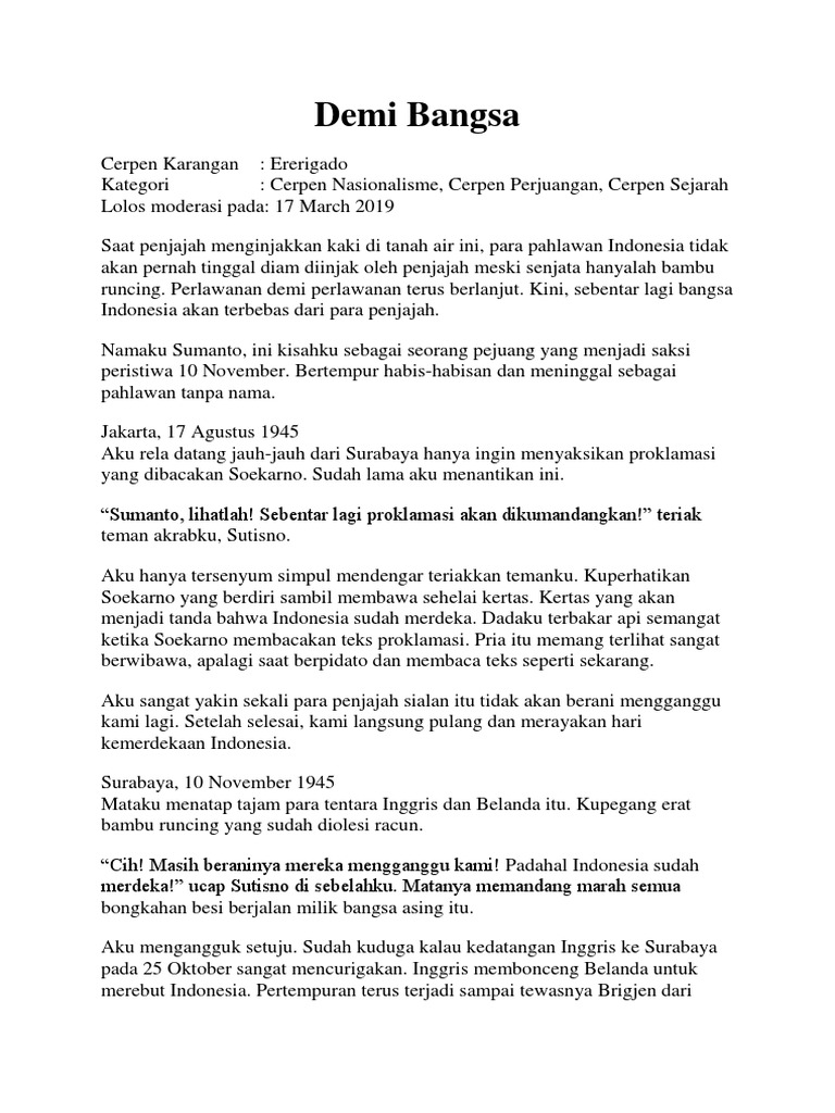 Pernah mengenyam pendidikan di universitas gajah mada. Cerpen anak semangat kemerdekaan untuk indonesia ke 70 bercerita tentang kekaguman seorang anak yang belibur melihat keindahan alam dan sejuknya udara desa. Dapatkan Newsletter Percuma Log Masuk Daftar.